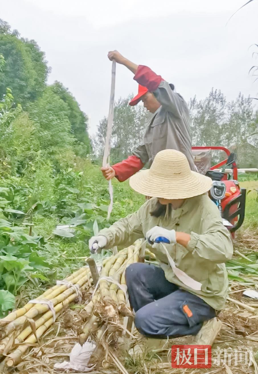 10月16日,在湖北省黄梅粉路镇太坝村昌化采摘园,戴静和妈妈正在忙着把甘蔗包装好装上卡车,一位顾客印象深刻,一共订购了100根甘蔗。