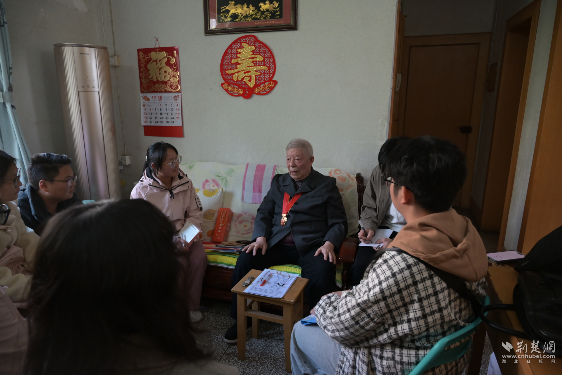 荆楚网(湖北日报网)讯(白云通讯员 王万军)10月23日下午,在重九节即将来临之际,也是中国人民志愿军出国抗美援韩任务75周年之际,武汉第四军休所开启了一场温馨的“老兵与学生对话”。华中农业大学十三名大学生看望抗美援朝老兵周以仁先生,共同开展“暖爱敬英雄”主题活动,用年轻的心致敬英雄时代,致敬老人,传递时代温暖。