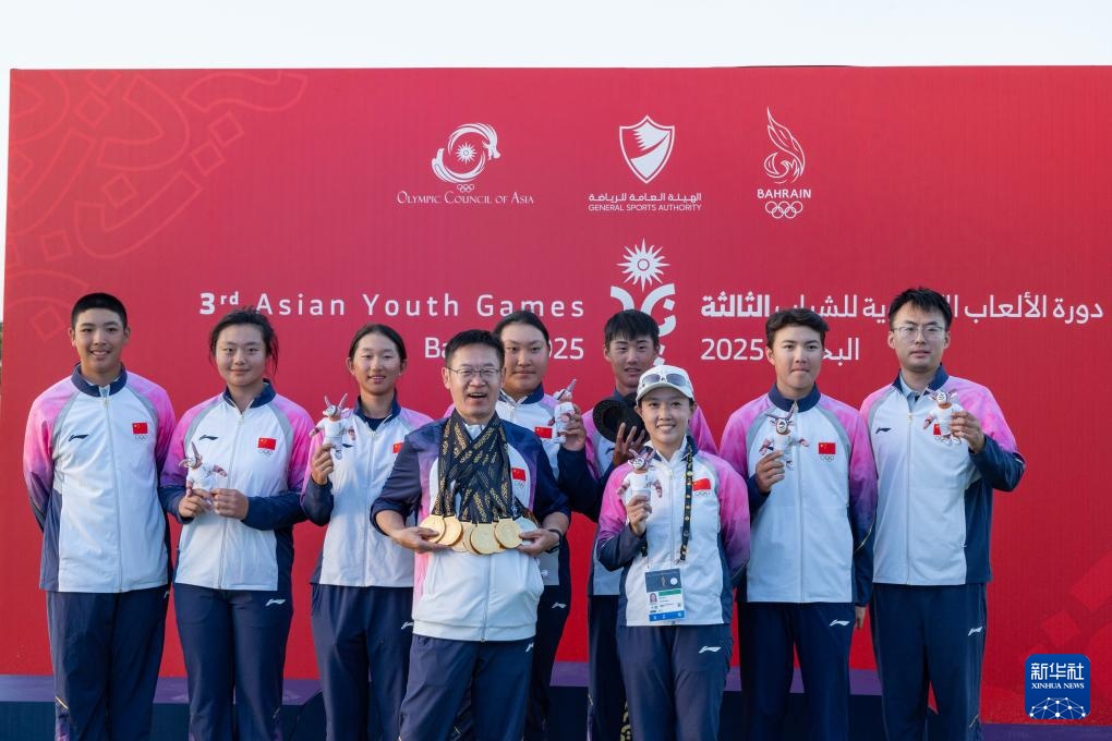 10月25日,中国高尔夫球队在赛后举行庆祝活动。韩进队成员获得男单冠军,崔京汉获得女单冠军,任伊佳获得女单银牌,以及男团冠军和女团冠军。同日,第三届亚洲青年运动会在巴林举行。新华社(巴林亚青运组委会供图)10月25日,中国选手袁磊参加男子跳远比赛。最终他获得了冠军。同日,第三届亚洲青年运动会在巴林举行。新华社(巴林亚青运组委会供图)10月25日,中国选手袁磊参加男子跳远比赛。最终他获得了冠军。同日,第三届亚洲青年运动会在巴林举行。新华社发(巴林亚青会组委会供图)10月25日,男子400米栏选手吴明伟(左二)冲过终点。最终他获得了冠军。同日,第三届亚洲青年运动会在巴林举行。新华社(巴林亚青运组委会供图)10月25日,中国选手吴明伟在男子400米栏比赛结束后举行庆祝活动。最终他获得了冠军。同日,第三届亚洲青年运动会在巴林举行。新华社(巴林亚青运组委会供图)10月25日,中国选手徐成伟(右一)参加男子2.000米障碍比赛。最终他获得了冠军。同日,第三届亚洲青年运动会在巴林举行。新华社发(巴林亚青组委会供图)
